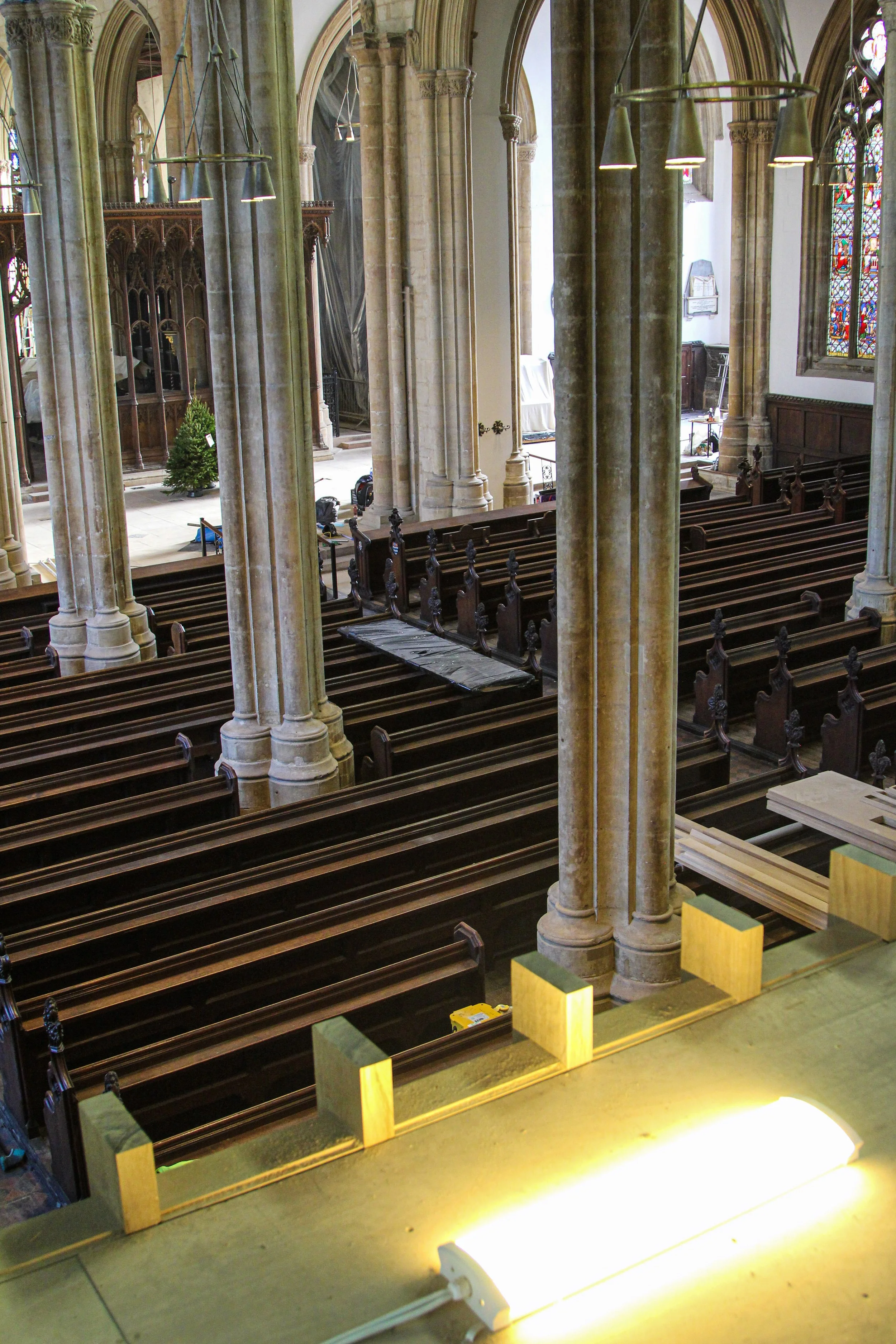 As cleaning works continue, the pews are uncovered for the first time in more than 12 months.