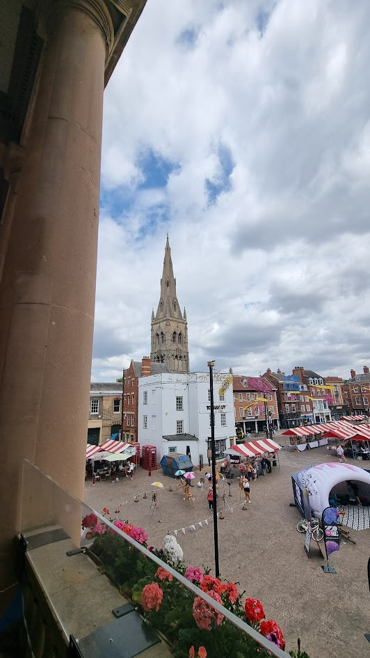 At Newark Book Festival 2025 visitors to the Town Hall could access the balcony - I couldn’t resist a peek at the Church from this vantage. Here are a couple of pictures looking from the Church at the Town Hall, and from the balcony back to the Church..